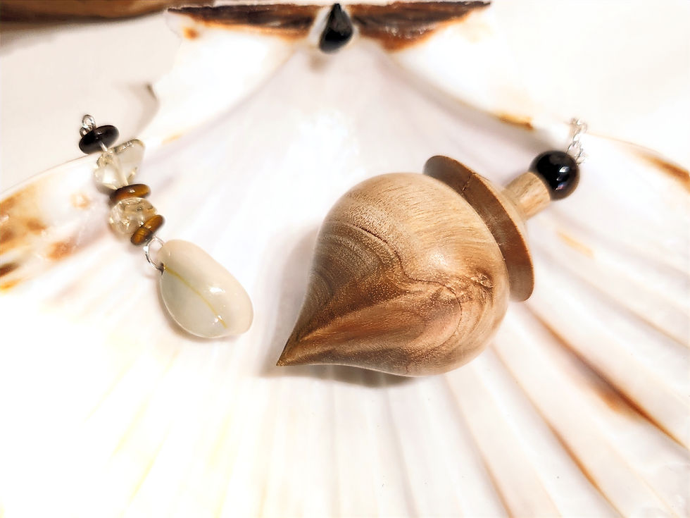 Merci à Val pour mon très beau pendule. Le bois est magnifique, harmonieusement travaillé et la chaîne réalisée avec pierres et coquillage . Merci pour tout !